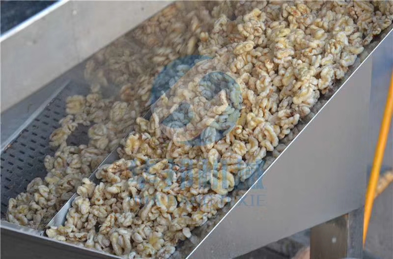 我公司生產(chǎn)的核桃仁去皮機采用純物理去皮工藝,無任何化學添加,去皮率高達98%,循環(huán)水使用,節(jié)能高效,是核桃仁深加工用戶理想的去皮設備。去皮后的核桃仁沒了苦澀的味道,味道醇香,深受客戶喜歡,對經(jīng)銷者來說核桃仁去皮前后價格也翻了幾番。去皮后的核桃仁可用作拌涼菜、核桃油、核桃粉、風味核桃、核桃點心、核桃露等。