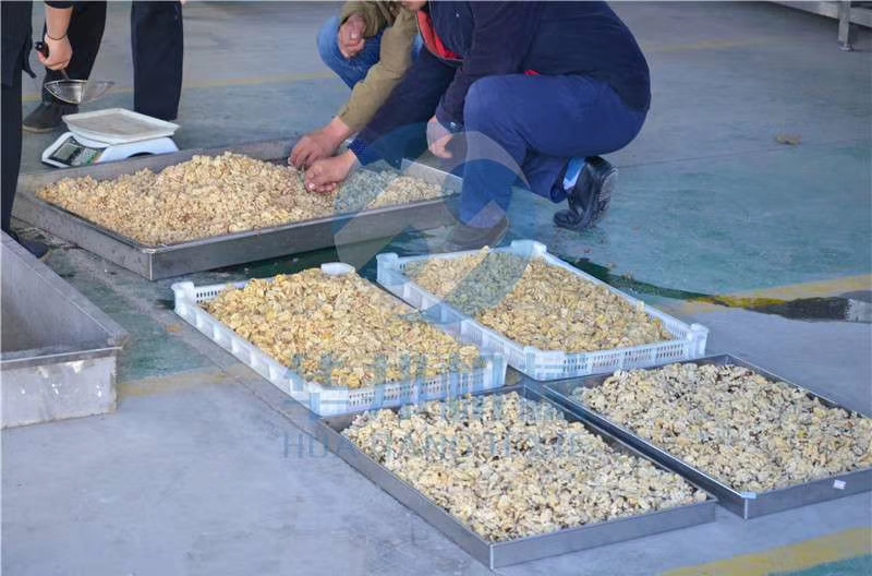 河北贊皇做核桃油核桃粉的秦總帶來200公斤河北本地和新疆核桃仁來我公司試機全自動核桃仁去皮機,200公斤核桃仁分別用4000型核桃仁去皮機(時產(chǎn)100公斤)和7500型全自動核桃仁去皮機(時產(chǎn)300公斤),秦總對核桃仁去皮效果非常滿意,當場與我公司達成合作共識!