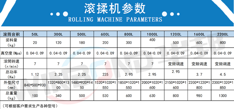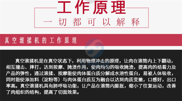 設(shè)備整機采用304不銹鋼制造,結(jié)構(gòu)緊湊,滾筒兩端均采用旋壓式封帽結(jié)構(gòu),增加滾筒內(nèi)的摔打空間,使?jié)L揉產(chǎn)品的效果均勻,噪音小,性能可靠,操作簡便,使用效率更高。具有變頻技術(shù)功能,機器使用安全,方便節(jié)能。