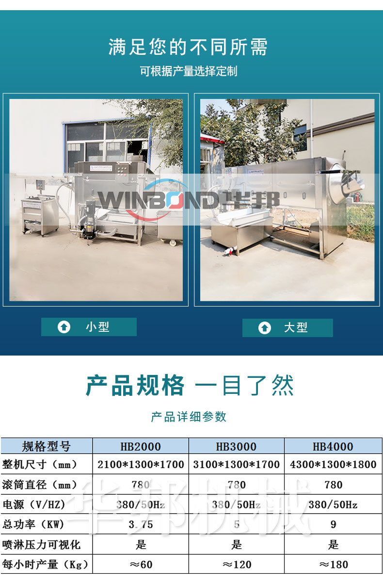 采用純物理清水去皮,滾筒式設(shè)計,0添加