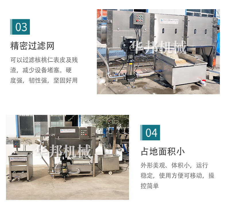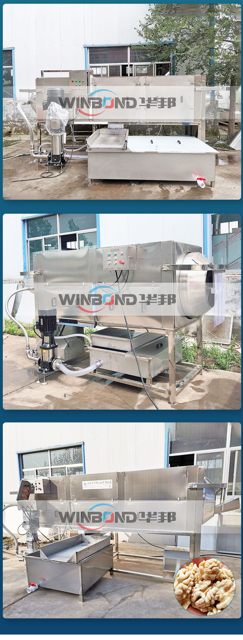 諸城華邦機械精心研究了并研發(fā)了核桃仁物理去衣技術(shù)和生產(chǎn)設(shè)備,物理脫皮技術(shù)且設(shè)備可以去掉不同品種核桃的技術(shù),采用純物理清水去皮,完整率99%以上,大幅度提高生產(chǎn)效率