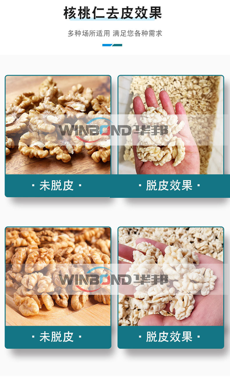 傳統(tǒng)的核桃仁銷售方式你進價格便宜,為了快速消耗掉當年的核桃仁,刺激消費者購買,必須將核桃仁進行深加工,做成各種脫皮原味核桃仁,不僅改善了口感,價格也會翻好幾倍,有新疆,云南,四川,陜西,山西,河北,湖北,山東等地區(qū)。不少廠家為此苦惱。影響口感和視覺,為解決這一大苦惱近年來我們專注于研發(fā)的這款核桃仁去皮機能為您解決這一大難事。而且,去皮以后的核桃仁價錢遠遠高于普通的核桃仁。