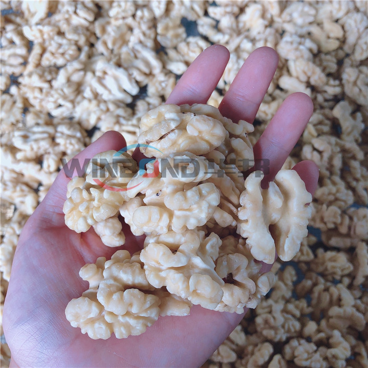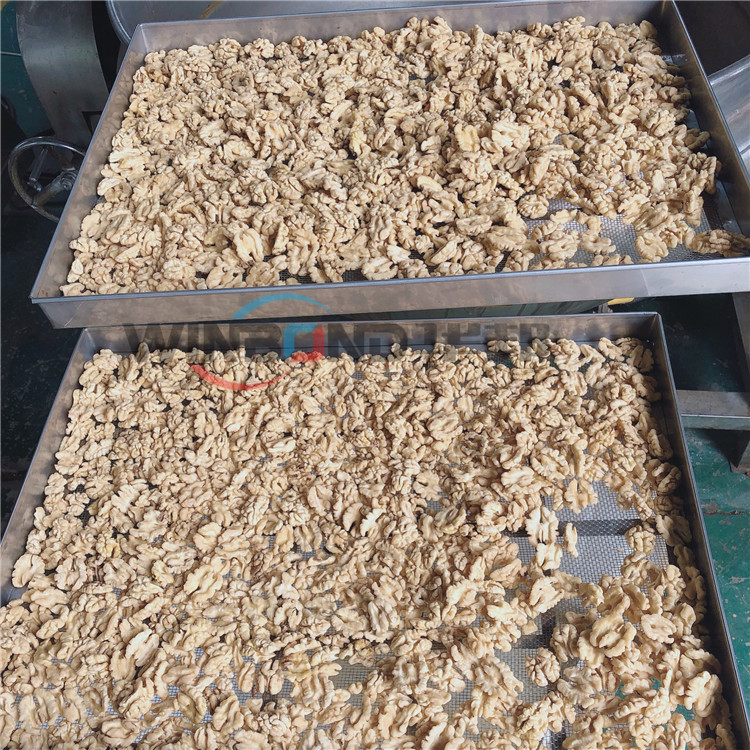 核桃仁去皮清洗機的主要作用是利用高壓水流沖洗掉核桃仁表面的皮衣,因為核桃仁表皮發(fā)澀,口感不好,