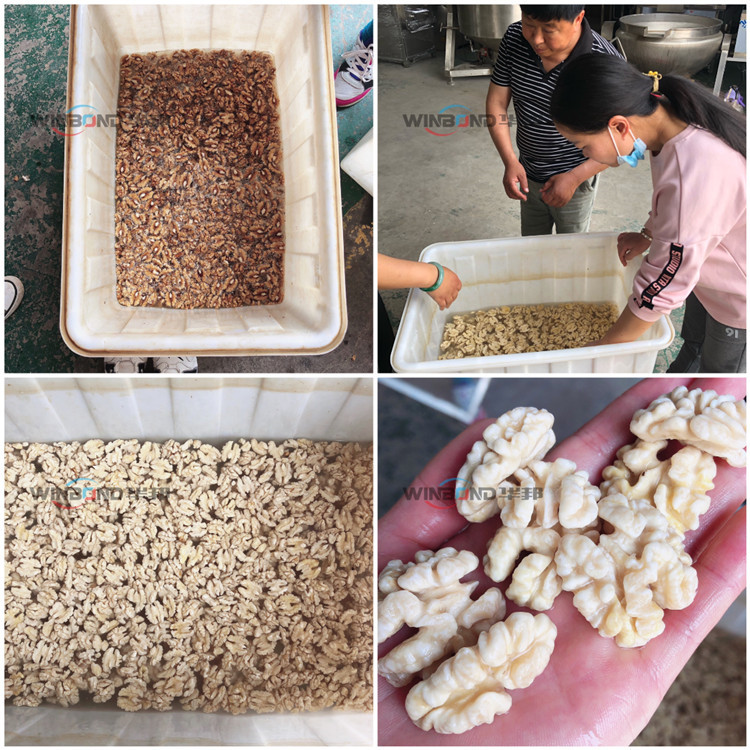 我們?nèi)粘I钪幸姷降暮颂胰识际菐в幸粚颖∫碌?,吃起來麻嘴,發(fā)澀,完全改變了核桃仁的美味,如果制成各種小零食,還是要把苦澀的外衣去掉,以前工藝落后,只有用堿浸泡,人工去皮,不但損壞了核桃仁的養(yǎng)分,而且效率太慢。