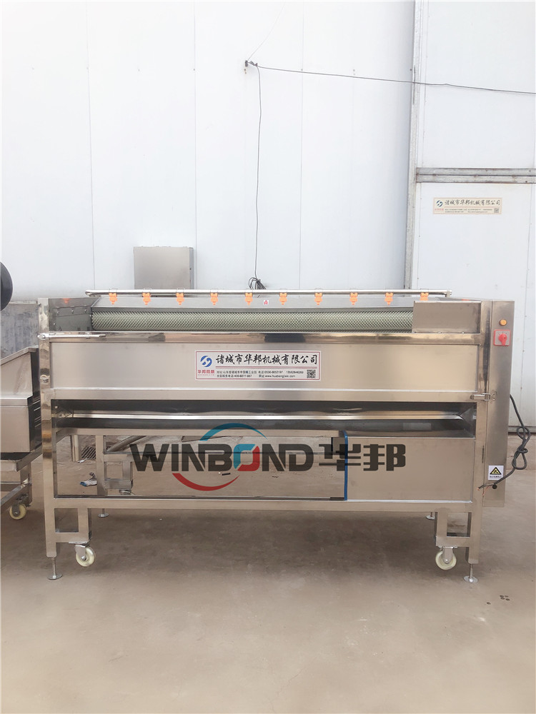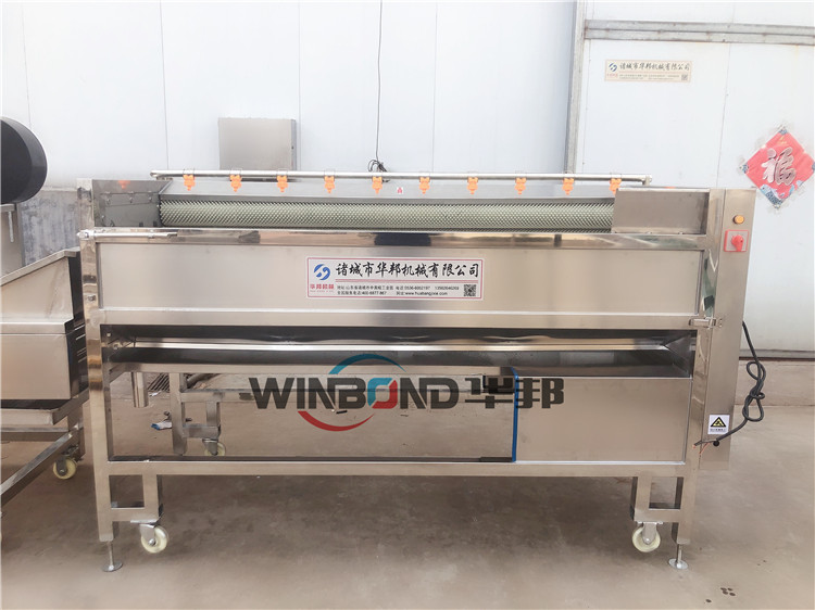 向(由高到低)互相磨擦,大型毛刷去皮機(jī)達(dá)到清洗去皮的目的。整機(jī)不銹鋼