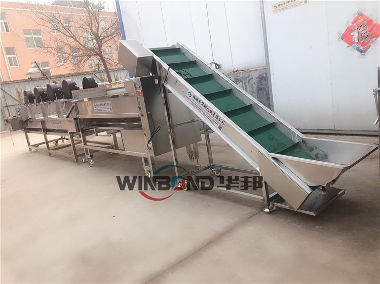 紅薯清洗機(jī) 根莖類蔬菜毛輥清洗機(jī)各毛輥同向轉(zhuǎn)動(dòng)。