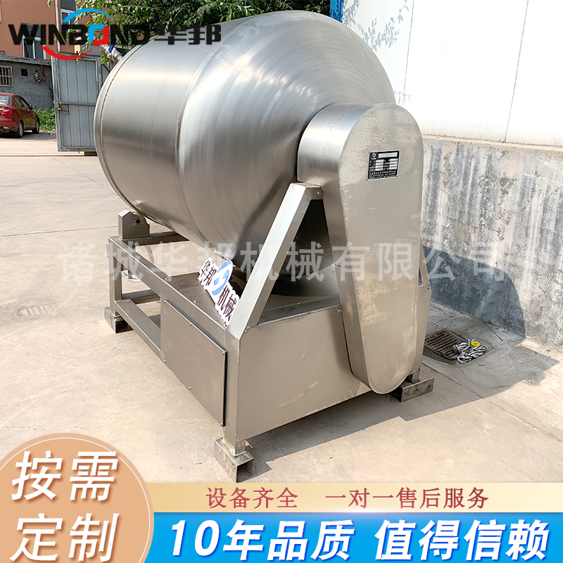 設(shè)備整機(jī)采用304不銹鋼制造,結(jié)構(gòu)緊湊,滾筒兩端均采用旋壓式封帽結(jié)構(gòu),增加滾筒內(nèi)的摔打空間,使?jié)L揉產(chǎn)品的效果均勻,噪音小,性能可靠,操作簡(jiǎn)便,使用效率更高。具有變頻技術(shù)功能,機(jī)器使用安全,方便節(jié)能。