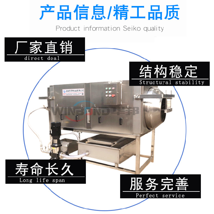 采用純物理清水去皮,滾筒式設(shè)計,0添加