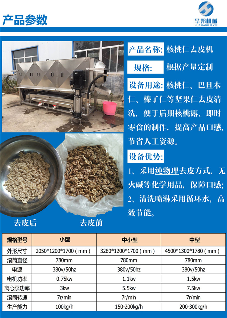 制作核桃粉核桃仁的去皮機(jī)技術(shù)參數(shù):